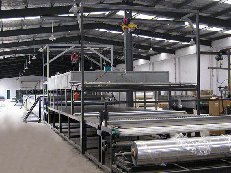 Upper or lower gelcoat unit is available for different requirement. Non-wind-blowing type gelcoat heating system prevents PET film from trembling, ensuring good quality of gelcoat layer. Pulse-free resin metering system, accurate metering, width range of adjustment, available for metering resin with powder add-ins. Impregnation platforms with independent heating and temperature control system, making impregnation fast in different ambient temperature, increasing production speed effectively. PLC based operating system, Tri-screen HMI, all production figures can be set in HMIs, and production running automatically, operators can be qualified upon short training. Three independent-control curing and forming zones, special programmed PID algorithm, fast preheating, low power consumption, increasing curing degree of finished products, ensuring high quality. Temperatures in curing zones up to 120℃, not only matching normal temperature curing system(MEKP system), but also being proper for high-temperature curing system(CHP system). High accuracy automatic synchronous cross cutting. National-standard steels are adopted for high performance and stability. National-standard cables(communication cables with dual-shield layer) are adopted for smooth communication and stable performance. On-line remote debugging is available based on internet connection.